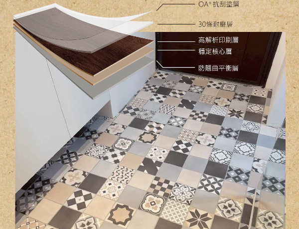 -花磚系列- Size : 304.8mm x 304.8mm x 3.0mm / 36pcs(3.344㎡) OA⁺ Coating 4V 微倒角 商用等級耐磨層 ▲FR61801 ▲FR61802 Size : 304.8mm x 609.6mm x 3.0mm / 18pcs(3.344㎡) OA⁺ Coating 4V 微倒角 商用等級耐磨層 ▲FR61803 ▲FR61804 ▲FR61805 ▲FR61806 ▲FR61807 ▲FR61808